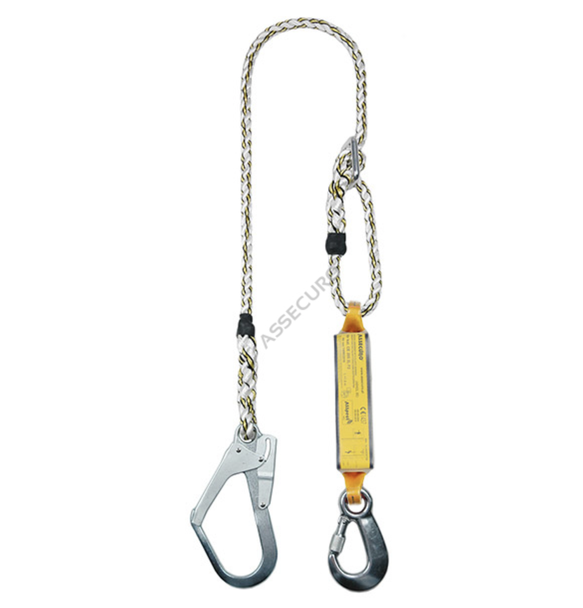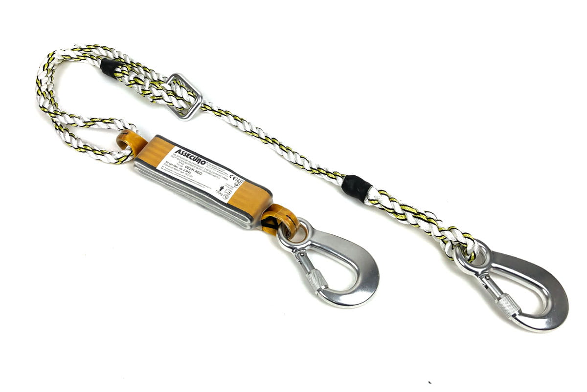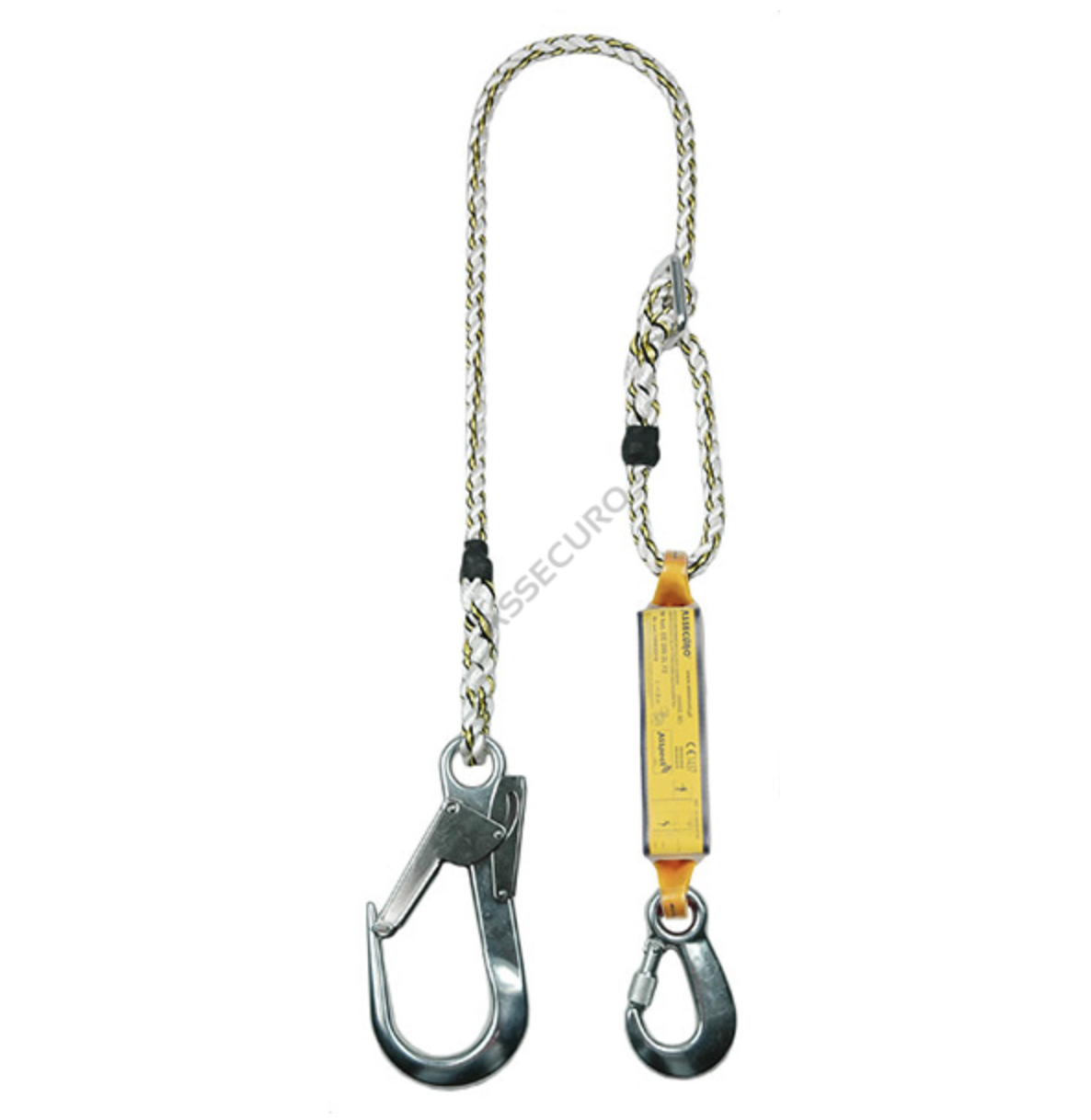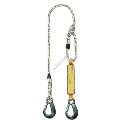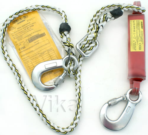 Amortyzator wykonany z taśmy poliamidowej techniką tkania i z dodatkową taśmą zabezpieczającą. Na stałe połączony z linką regulowaną, - długość całkowita: 1.9m, - z dwoma zatrzaśnikami Zgodny z PN – EN 355, 354. Masa: 500 – 590g