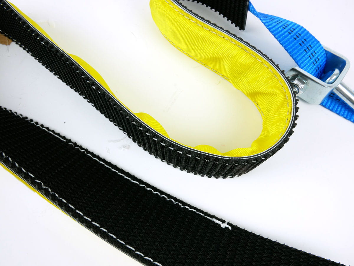 Koło pojazdu zostaje opasane pasem transportowym, który mocowany jest do platformy w trzech punktach za pomocą haków. Taśma jest następnie napinana napinaczem, a rękaw ochronny utrzymuje ją w odpowiedniej pozycji i ogranicza zużycie. Dzięki temu pas nie ma bezpośredniego kontaktu z oponą, a pojazd pozostaje stabilnie zabezpieczony.