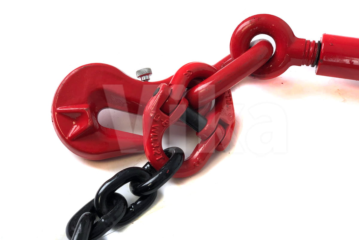 Na specjalne zamówienie możemy przygotować również wersję łańcuch transportowego z dwoma hakami skracającymi po obu stronach napinacza oraz z niestandardową długością krótkiego łańcucha.
