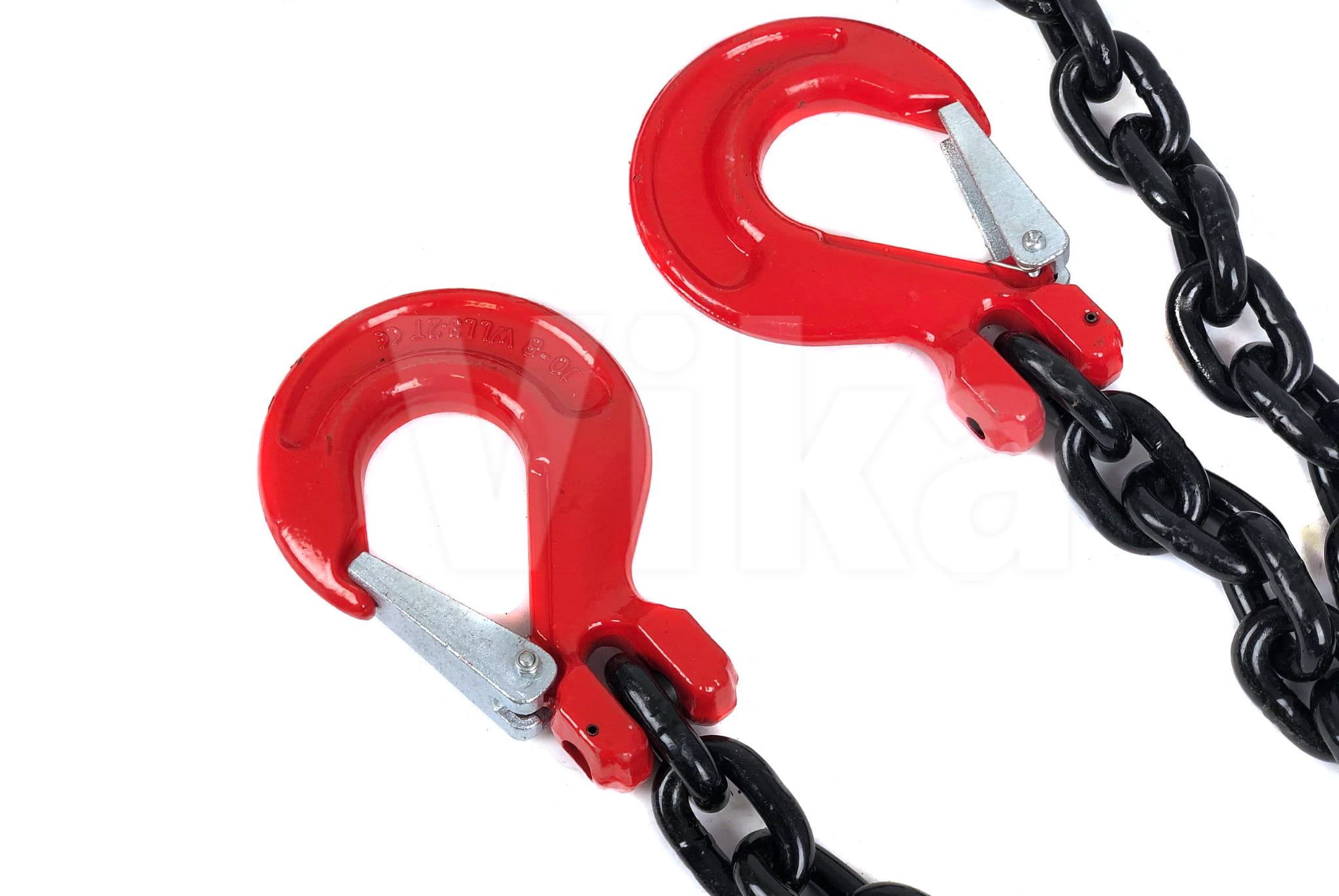 Haki zamocowane do końców łańcuchów posiadają zabezpieczenie - zapadkę.
