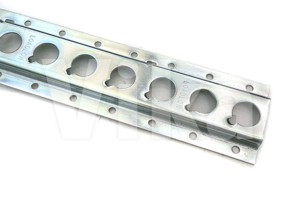 Listwa kotwiczna 1806 wykonana jest z mocnej, ocynkowanej stali. Listwa ta dedykowana jest do użycia z pasami transportowymi z hakiem 1823. Okrągłe otwory są również idealnie dopasowane do zakończeń stalowych drążków rozporowych (ścięty stożek). W otwory tej listwy będą również pasować uniwersalne haki 1827.