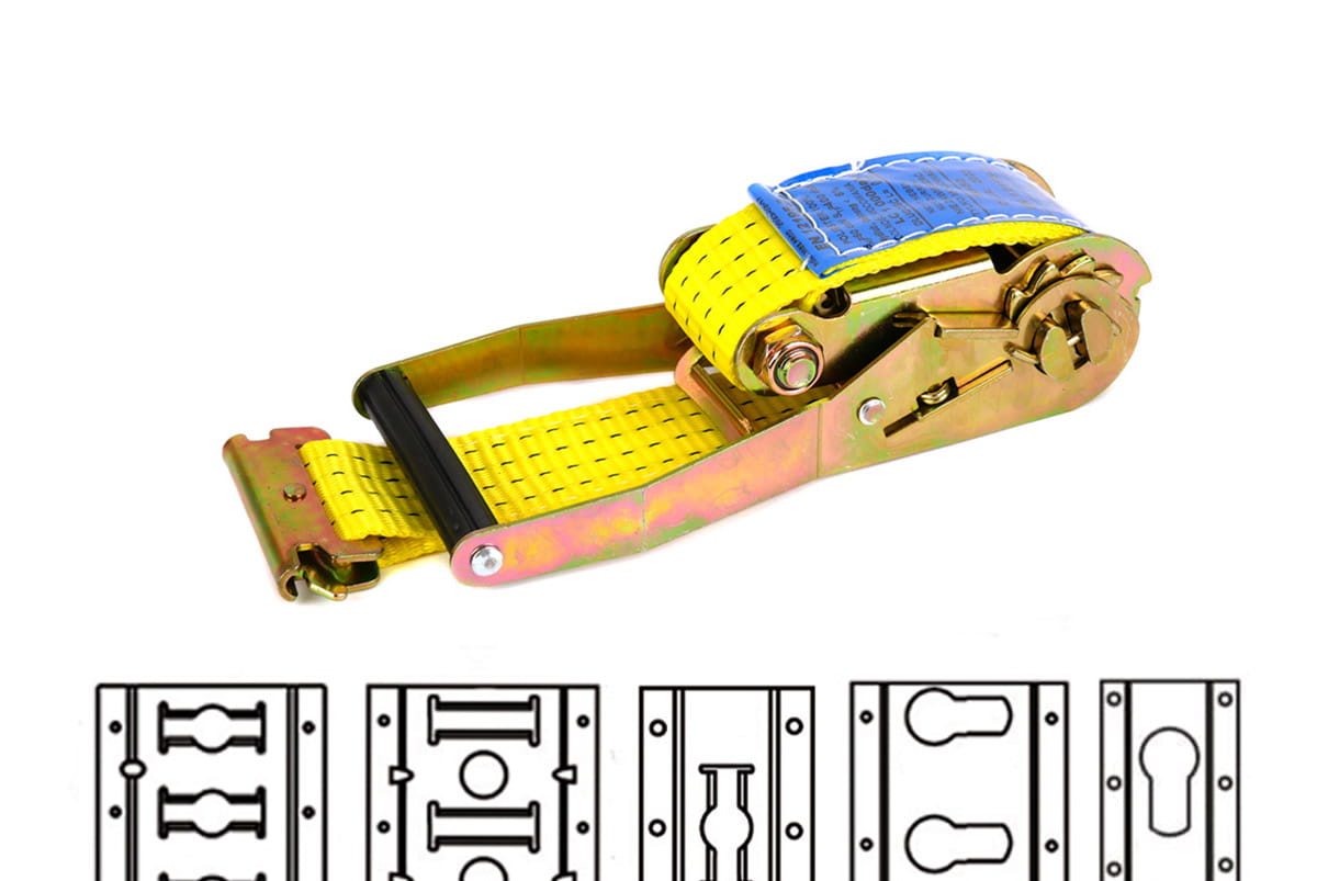 Napinacz z paskiem o długości 0,5 m zakończony hakiem 1826 do listew. Taśma koloru żółtego o wytrzymałości 6t.