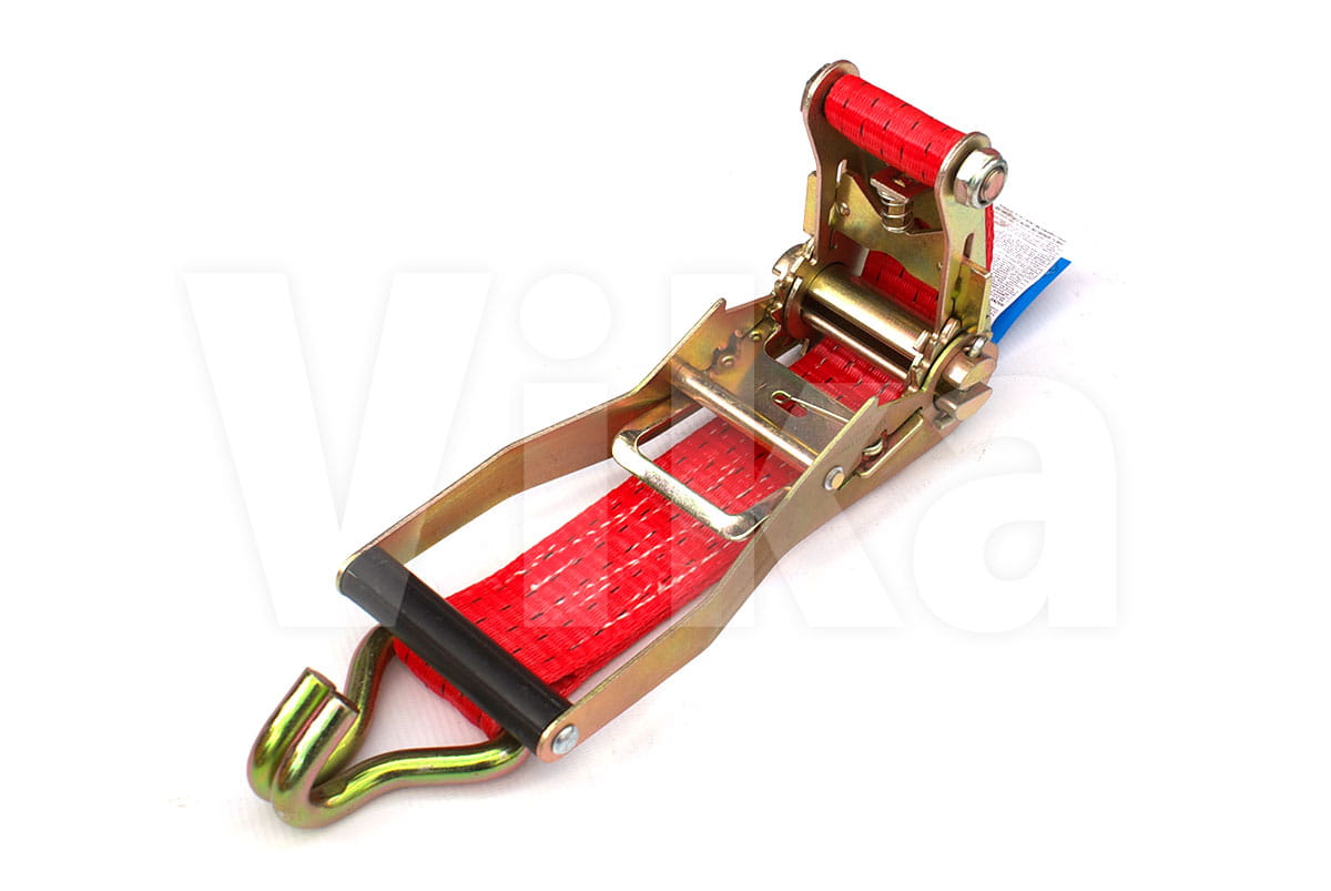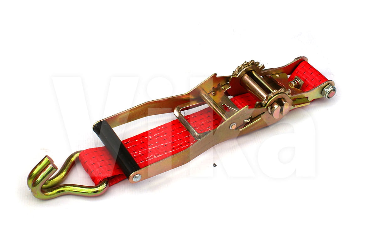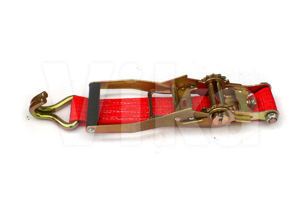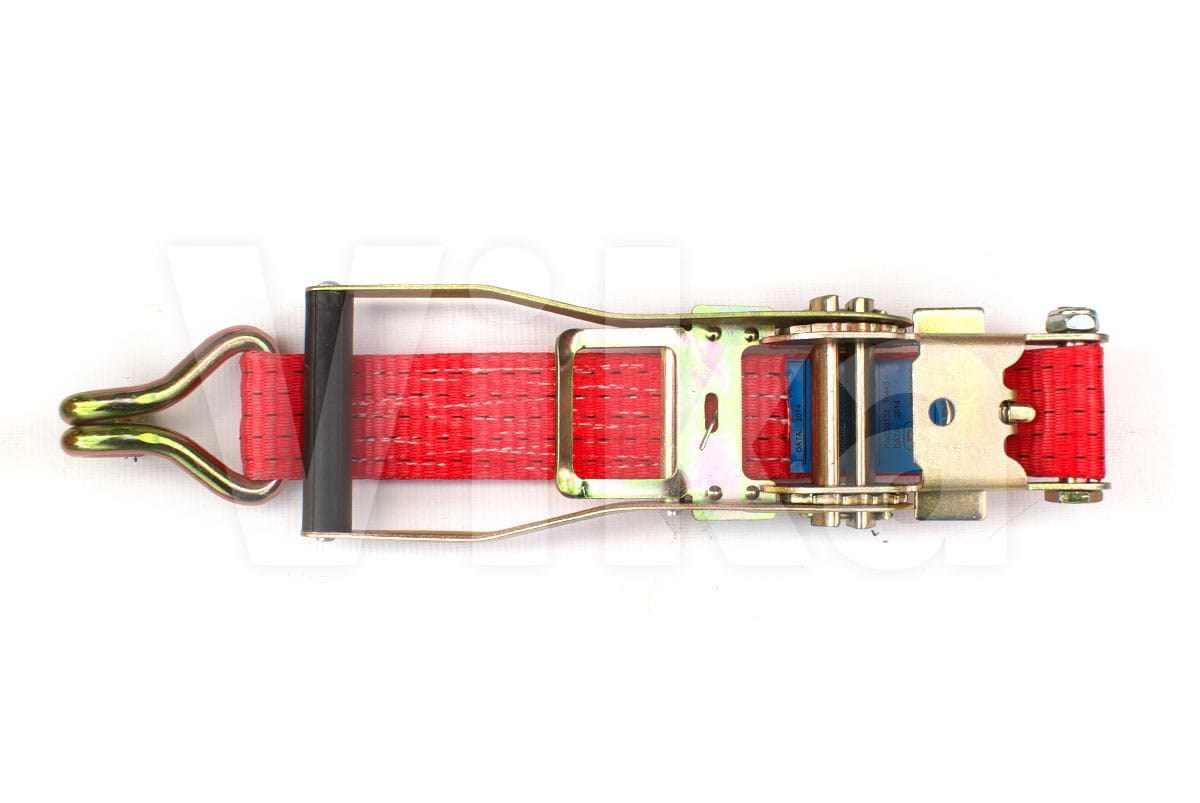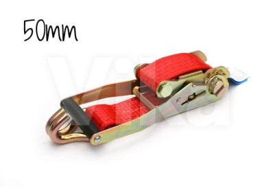 Napinacz 50mm/5t o długości całkowitej pasa 0,5m. Napinacz zakończony jest atestowanym hakiem. (nominalna wytrzymałość taśmy 7,5t.)