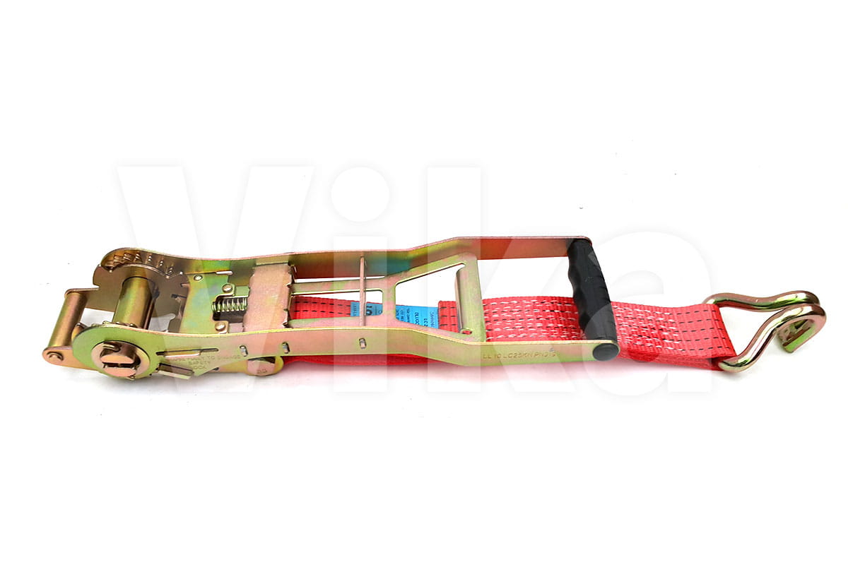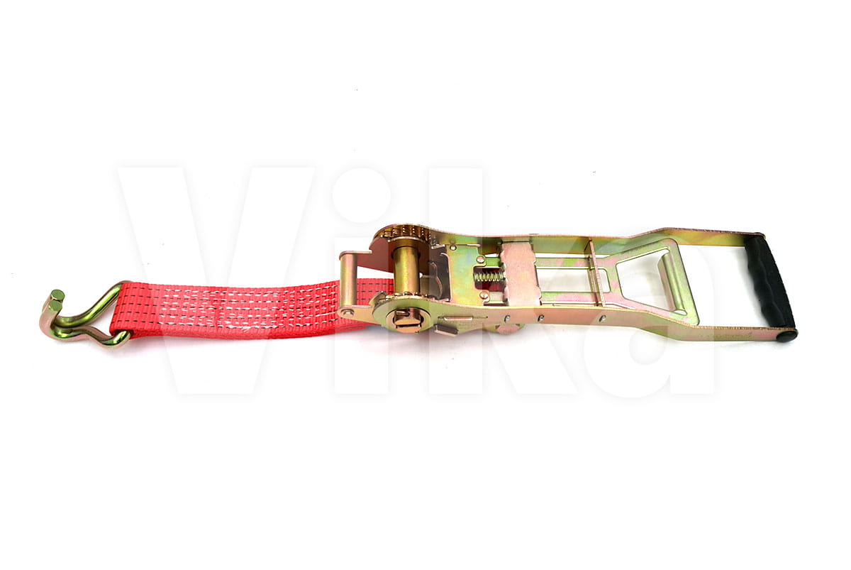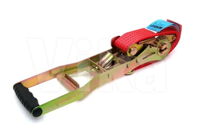 Napinacz 50mm/5t o długości całkowitej pasa 0,5m. Napinacz zakończony jest atestowanym hakiem. (nominalna wytrzymałość taśmy 7,5t.)