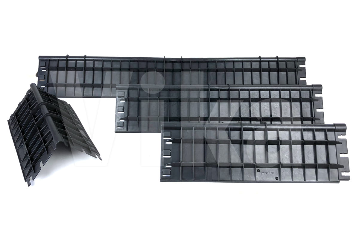 Narożniki B/N do zabezpieczania długich krawędzi ładunku. Narożniki zakończone zaczepami do łączenia narożników B/N o różnych długościach.