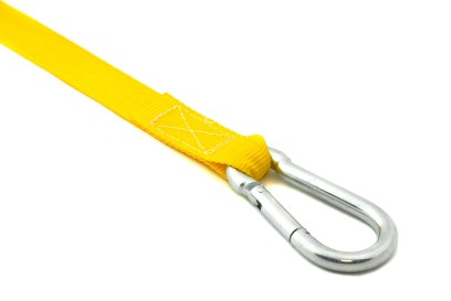 Pasek mocujący o szerokość 25 mm koloru żółtego (odcień koloru może się różnić) zakończony karabińczykiem 9 mm. Dostępny w różnych długościach.