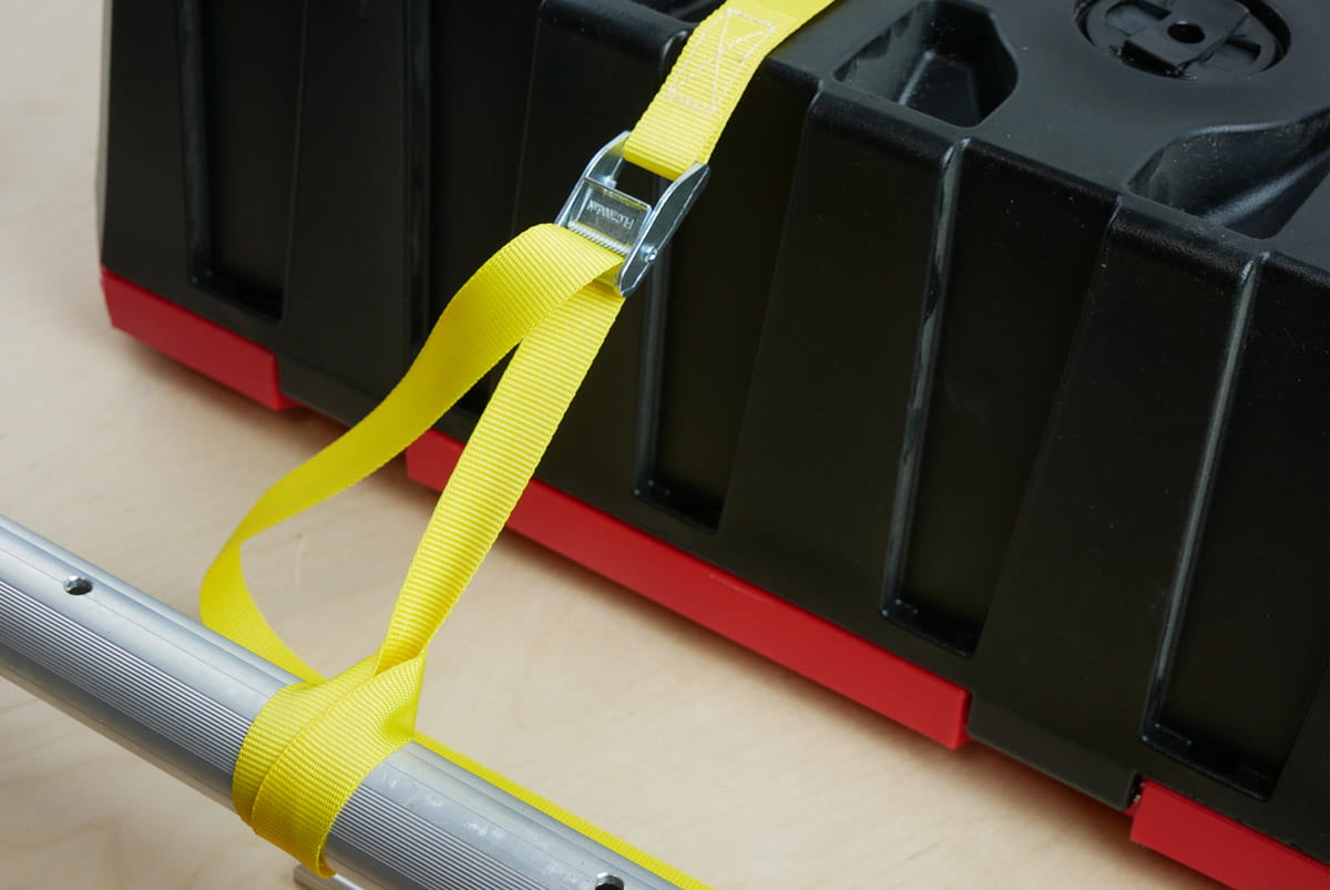 Mocowanie narzędzi i sprzętu w garażu lub warsztacie - pasy mocujące z klamrą można wykorzystać w garażu.