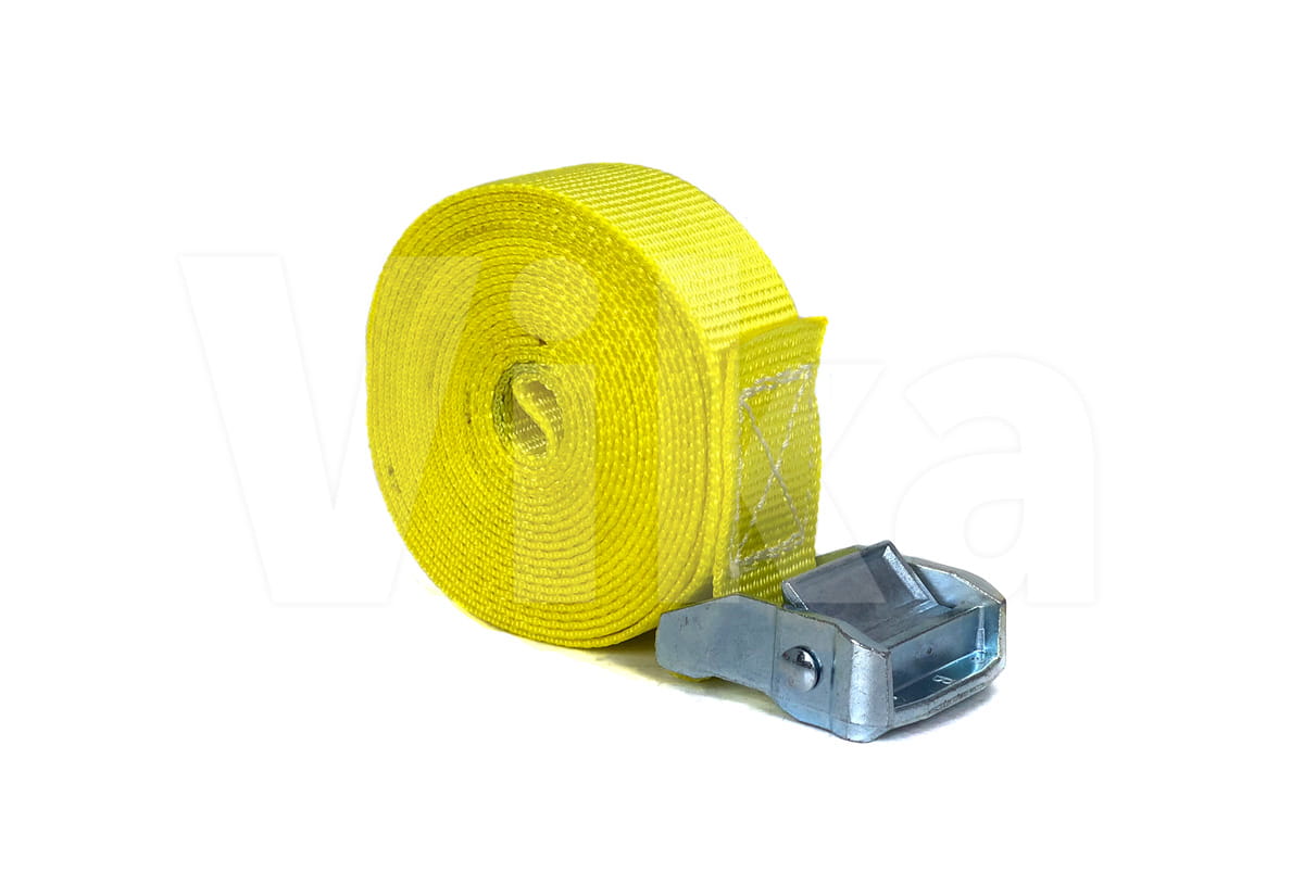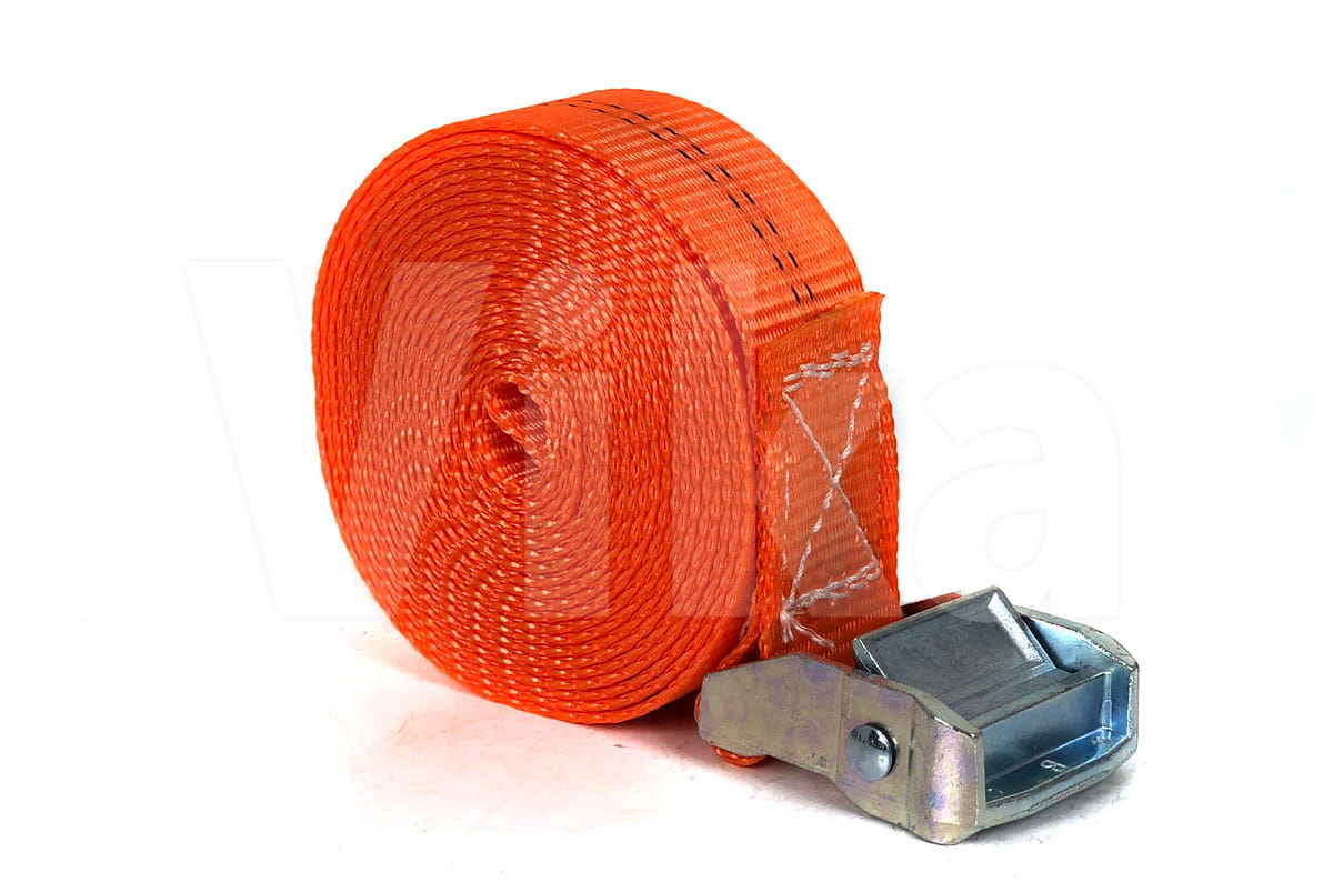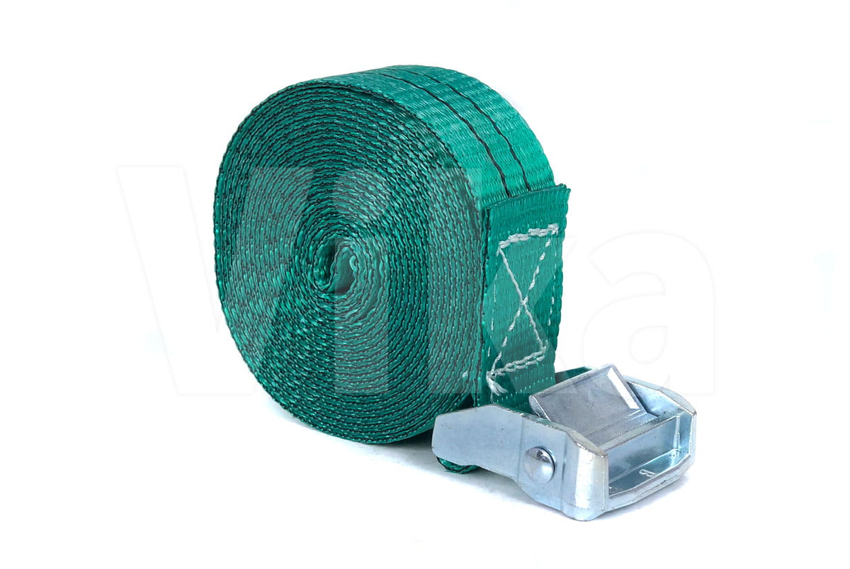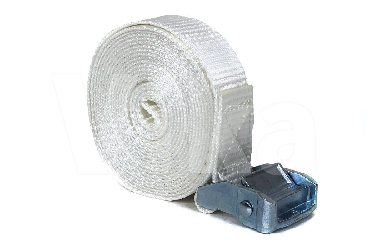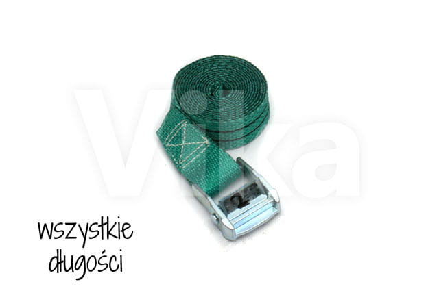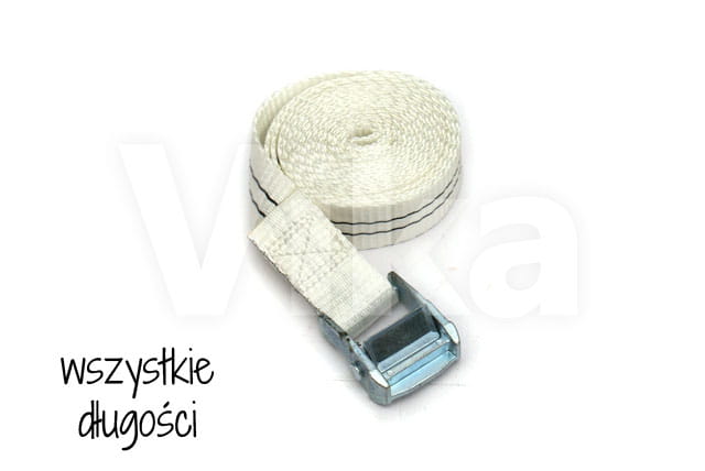 Pas zbudowany jest z taśmy z włókien poliestrowych (PES) o szerokości 35 mm. Wytrzymałość taśmy na zerwanie to 3000 kg. Wytrzymałość klamry jest o wiele mniejsza i wynosi około 350 kg, dlatego pasy ściągające radzimy stosować przy maksymalnym obciążeniu 300 kg.