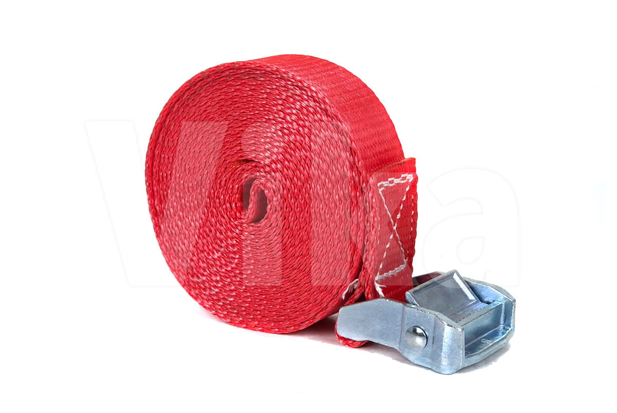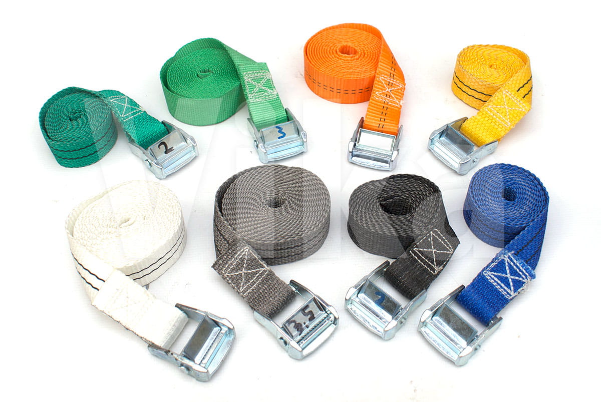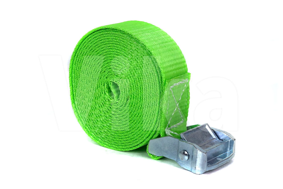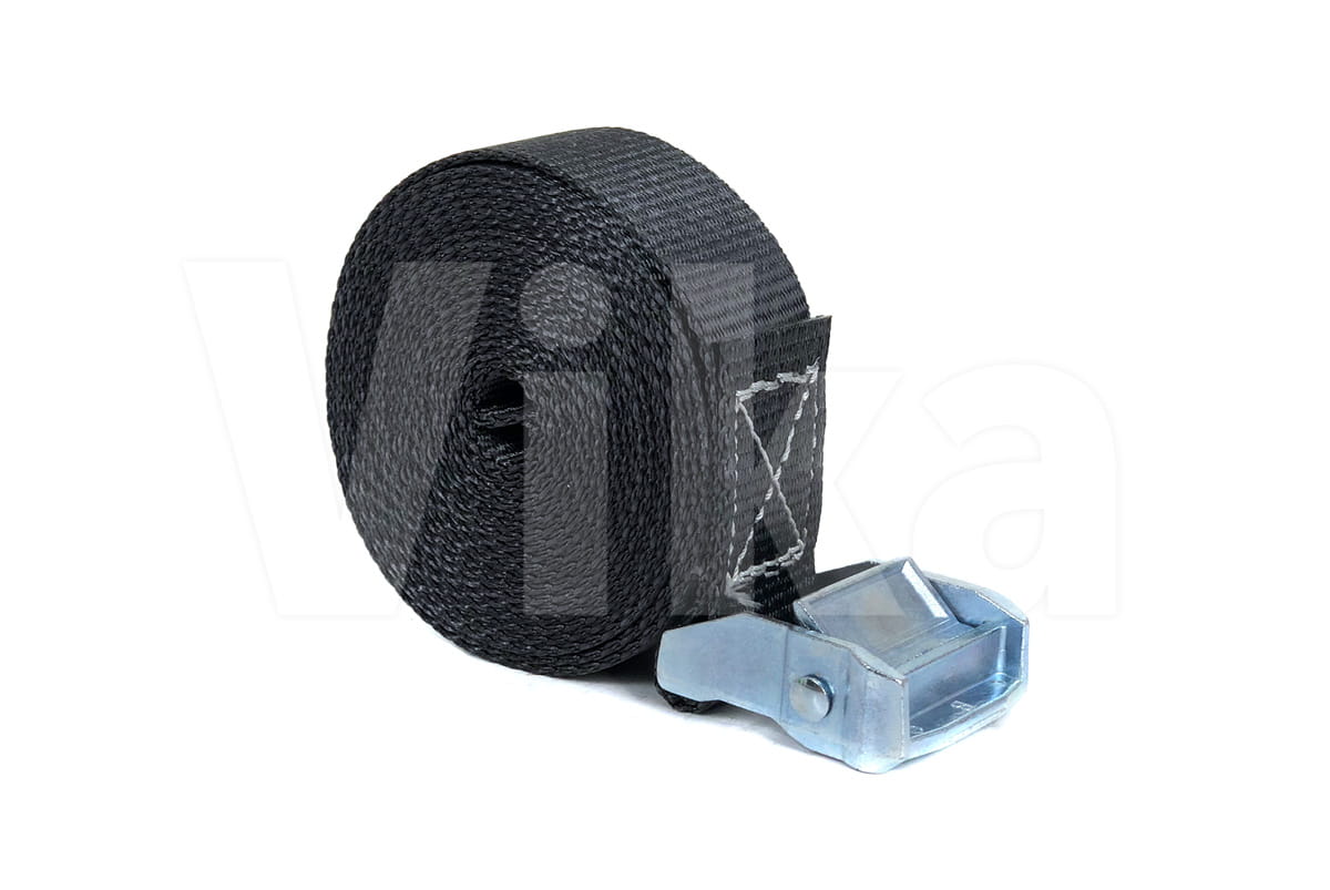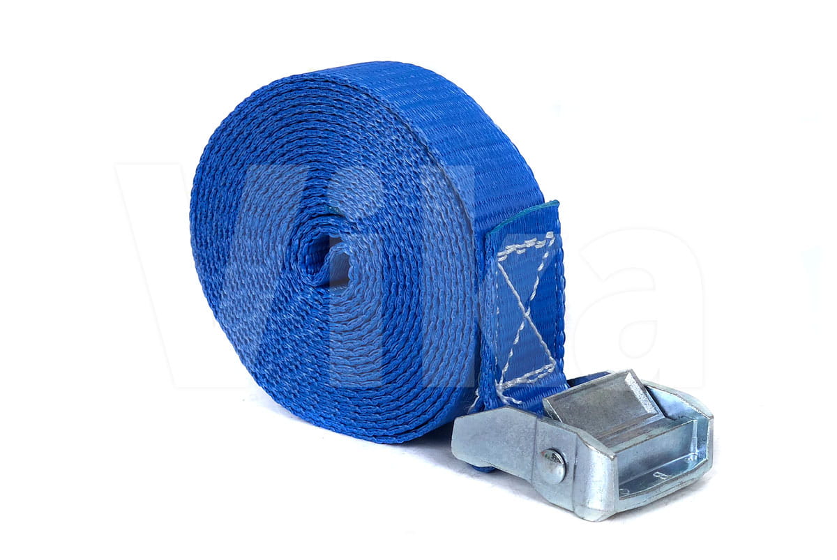 Pas zbudowany jest z taśmy z włókien poliestrowych (PES) o szerokości 35 mm. Wytrzymałość taśmy na zerwanie to 3000 kg. Wytrzymałość klamry jest o wiele mniejsza i wynosi około 350 kg, dlatego pasy ściągające radzimy stosować przy maksymalnym obciążeniu 300 kg.