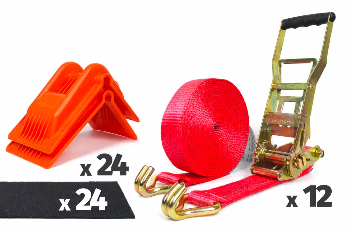 Pasy ERGO · 500daN · Atest 5 ton · 12 pasów + 24 narożniki + 24 maty antypoślizgowe