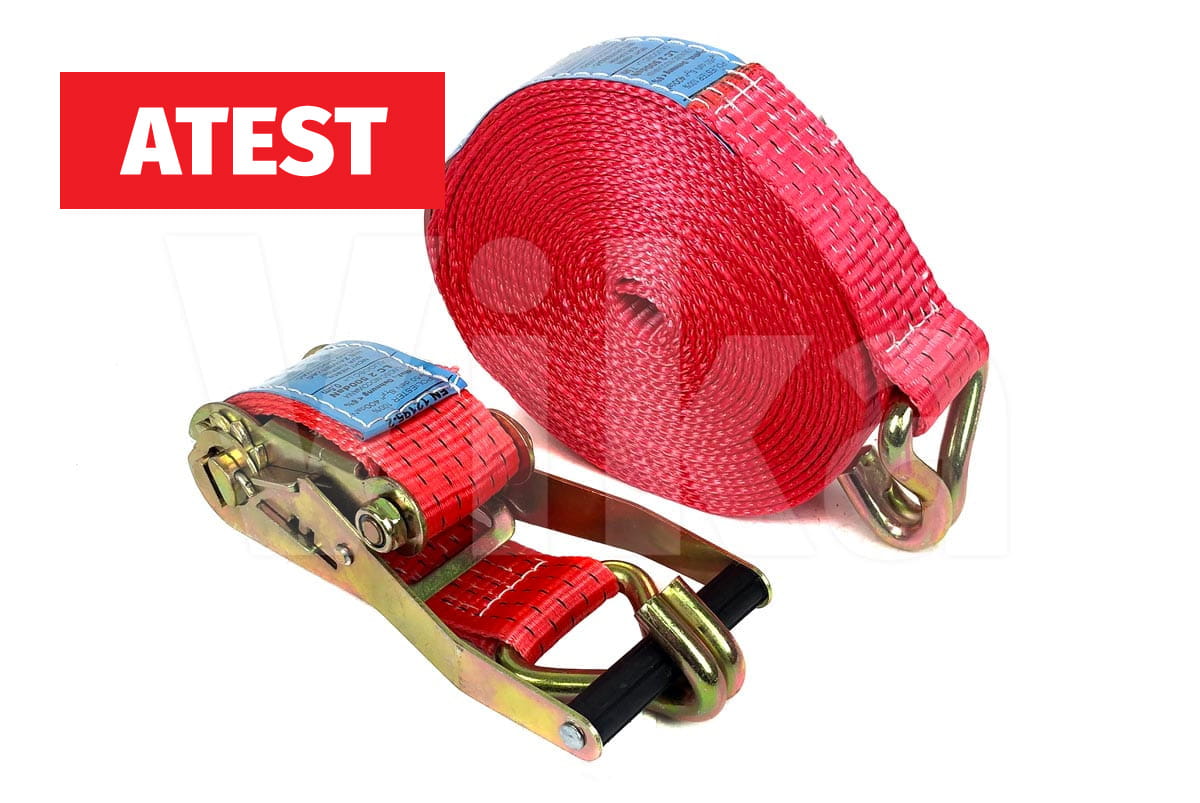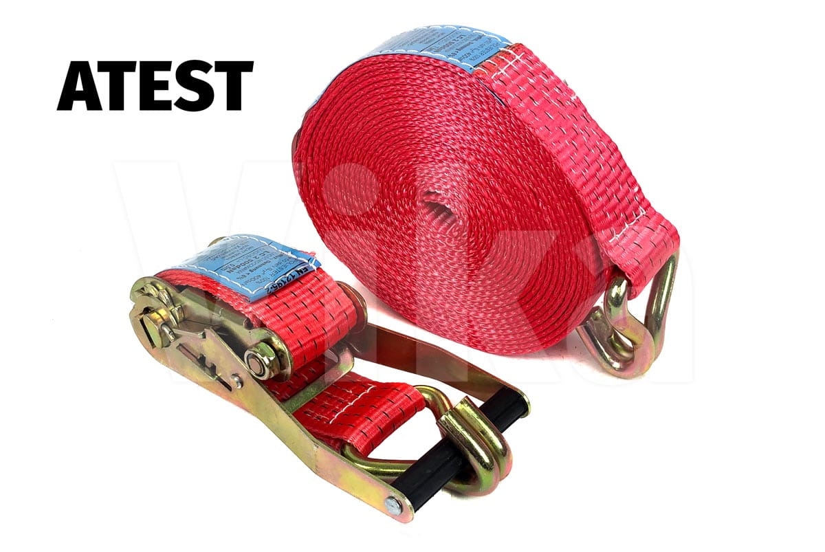 Kompletny pas 50mm/5t. Nominalna wytrzymałość taśmy to 7,5t. Spełnia unijną normę EN 12195-2. Wykorzystywany jest przede wszystkim do mocowania ładunków przewożonych TIRem oraz do zabezpieczenia transportu ciężkich ładunków.