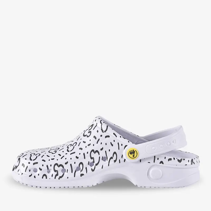 Introducing the Safety Jogger MICKEY SONIC OB clog, a perfect fusion of style and safety designed specifically for the demanding environments of healthcare and cleaning. This shoe expertly combines protection and comfort, making it an essential choice for professionals who prioritize their well-being while on the job. The MICKEY SONIC OB is crafted from expanded EVA, ensuring an incredibly lightweight feel without compromising durability. Its ESD certification protects sensitive electronic components, mitigating the risk of electrostatic discharge. The ergonomic design supports posture and reduces fatigue, allowing users to remain comfortable during long shifts. With a waterproof and hygienic construction, these clogs can be easily cleaned in a washing machine at 30°C, making maintenance a breeze. Moreover, the ability to sterilize the shoe chemically or via UV light ensures the highest standards of hygiene, essential in medical settings where cleanliness is paramount. Whether you're in a hospital, clinic, or cleaning environment, the MICKEY SONIC OB delivers exceptional protection, comfort, and practicality.