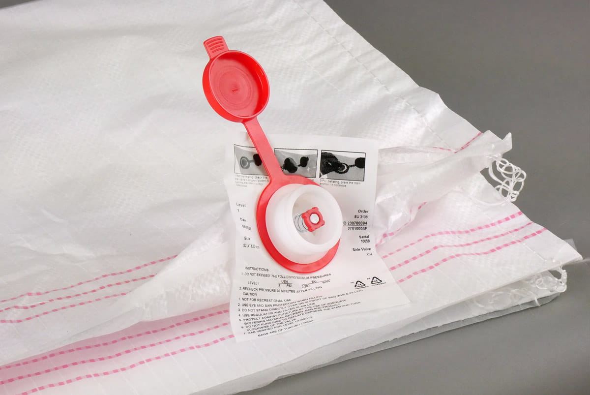 Zastosowanie zaworu szybkiego pompowania sprawa, że worek możemy napełnić w kila sekund. Zawór zbudowany jest na sprężynie, umieszczony na rogu worków. Wydajność napełniania 50 do 70% większa niż w starszych systemach pompowania.