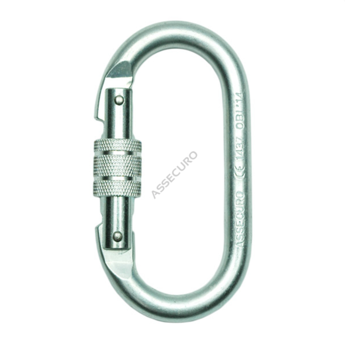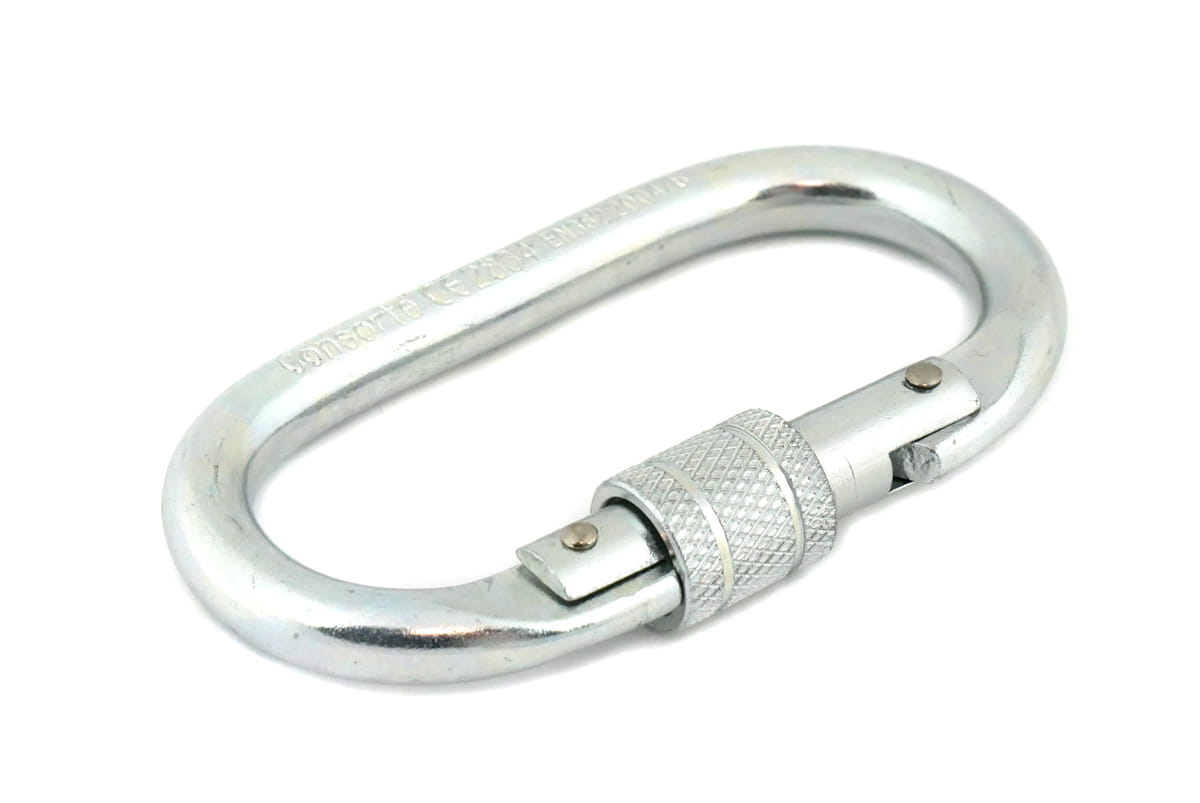 Zatrzaśnik OWAL - stalowy - zakręcany - otwarcie: 17mm - wsokość: 106mm - wytrzymałość 22kN - zgodny z PN-EN 362 - masa: 160g