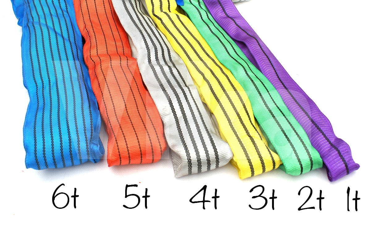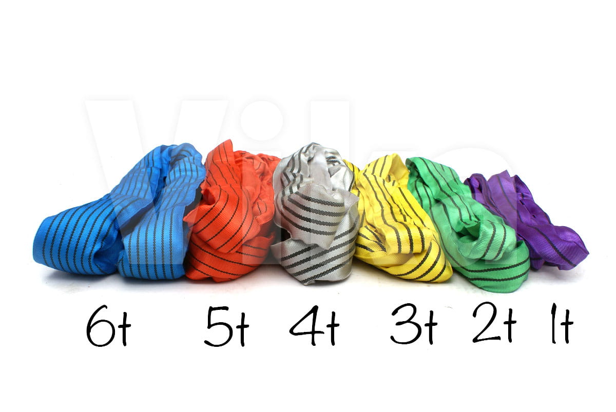 Kolor oraz liczba czarnych podłużnych linii na rękawie wskazują na udźwig danego zawiesia. W tym przypadku kolor żółty oraz trzy przeszycia wskazują na dopuszczalne obciążenie robocze 3 tony w układzie prostym (mocowanie w linii prostej). Jednakże wartość parametru DOR zmienia się w zależności od sposobu mocowania. W tabeli poniżej oraz na początkowej grafice zamieszczone są wartości dopuszczalnego udźwigu dla innych układów mocowania.