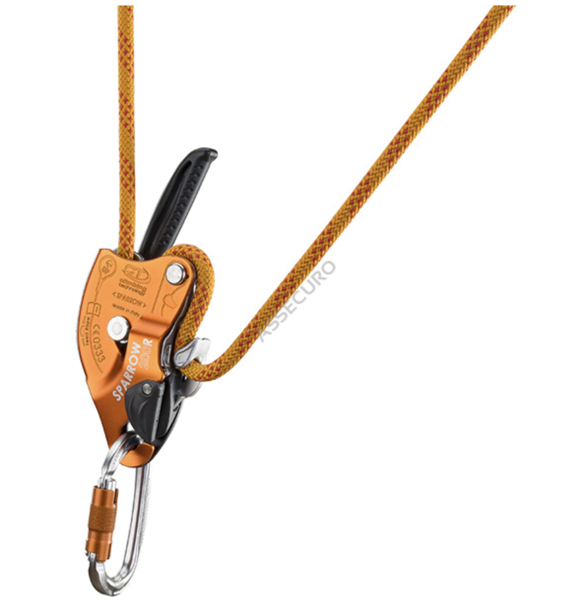 - możliwość wypięcia i wpięcia liny bez wypinania przyrządu z uprzęży, co zmniejsza ryzyko upuszczenia i ułatwia przepinanie na węzłach