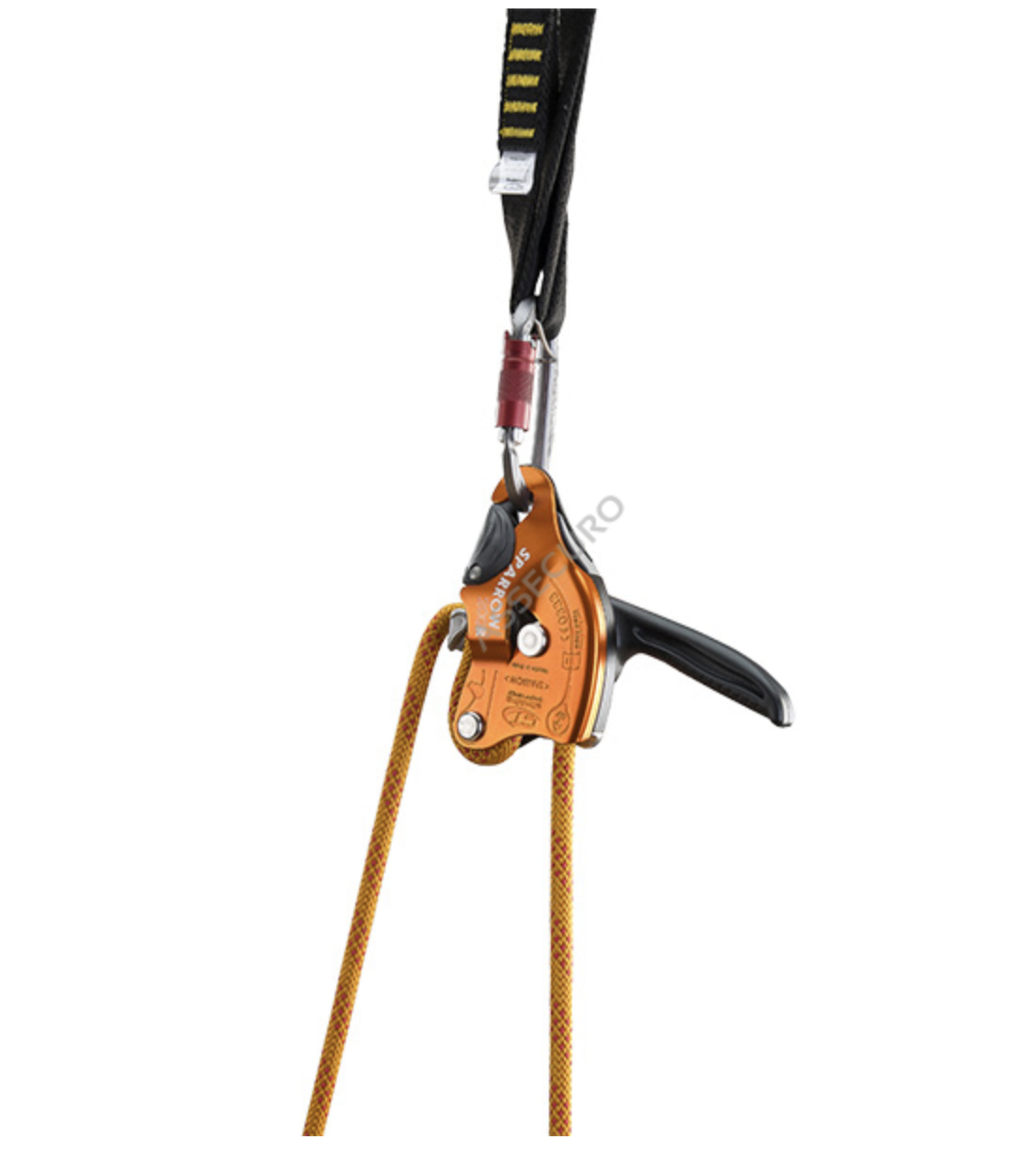 - wielofunkcyjną dźwignię - jej puszczenie powoduje automatyczne zablokowanie przyrządu, istnieje także możliwość blokowania przyrządu w pozycji „do pracy” bez konieczności wiązania liny czy używania dodatkowego przyrządu